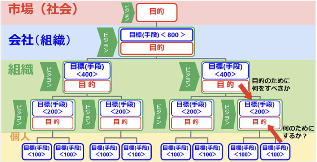社員が行動できるまで、目的・目標・ビジョンを分解する必要があります。